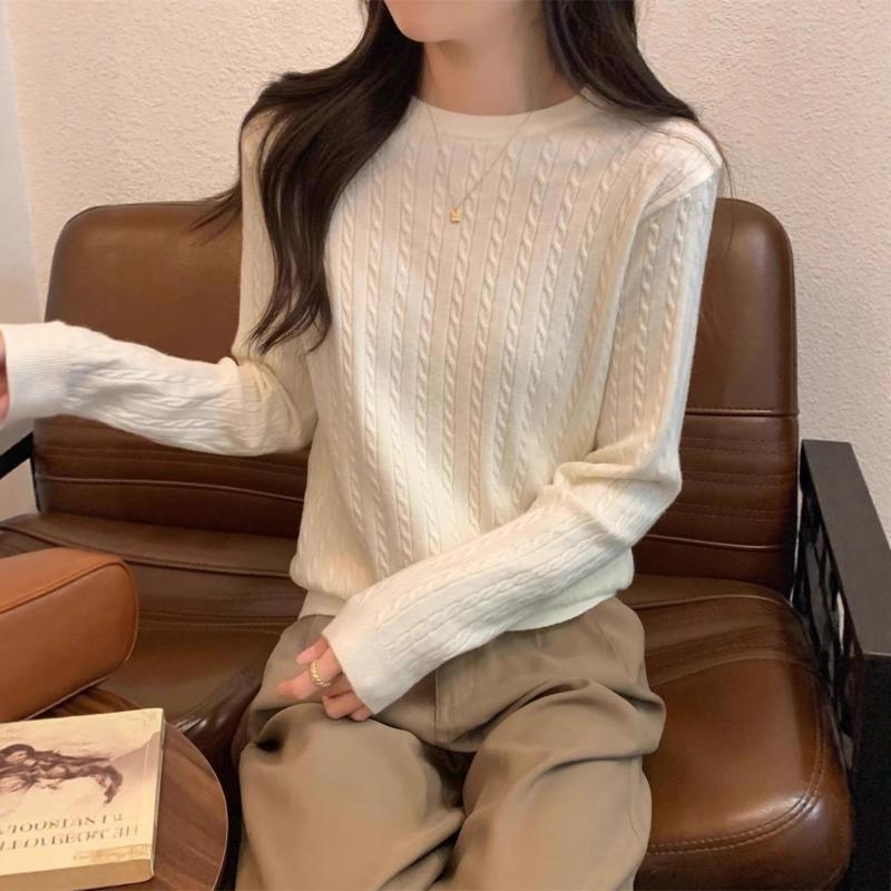 Simple Lazy Style Knitted Sweater Autumn and Winter Design Sense Twist Inner Bottoming Shirt Women's Age-reducing Top