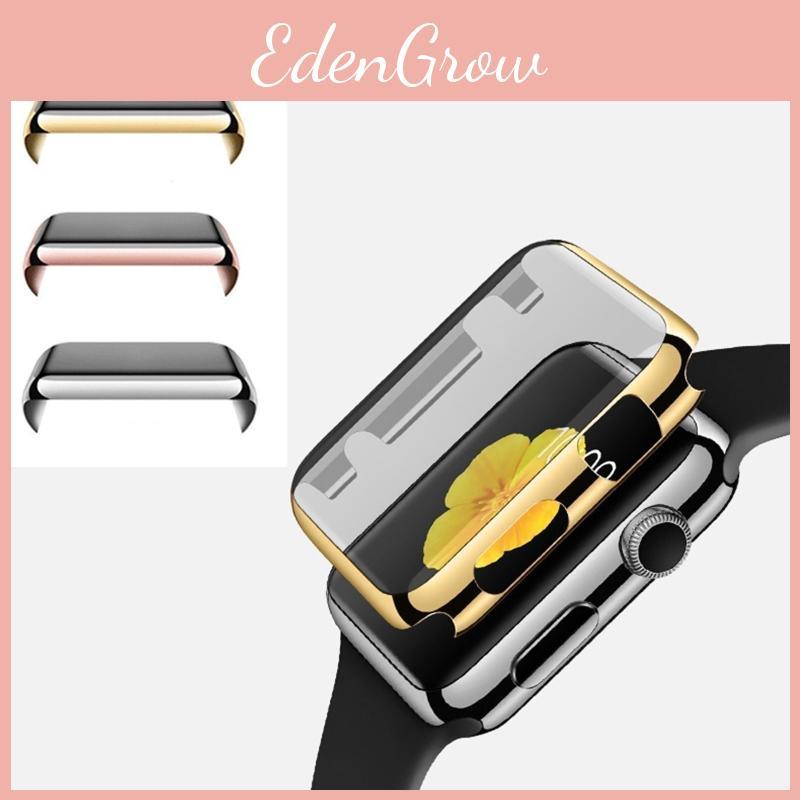 This protective case is designed for Apple Watch models 38mm and 42mm, offering durable defense with a hard PC shell featuring electroplated finishes. providing a sleek, lightweight layer of protection. Suitable for daily use, it safeguards against scratches and impacts while maintaining access to all functions. Easy to clean with a damp cloth, it enhances thes appearance and durability during regular wear.