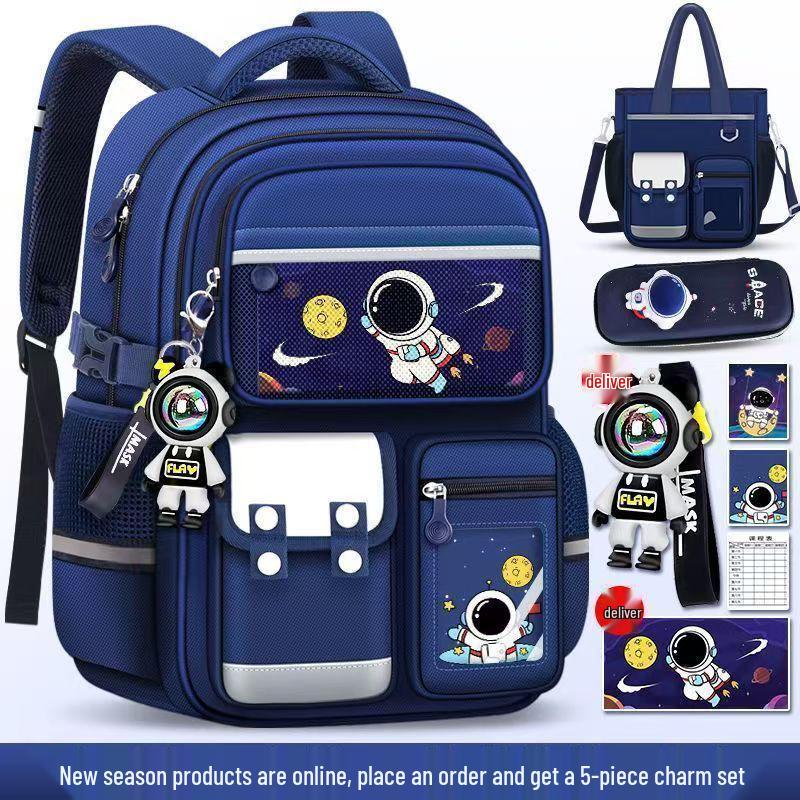 Elementary Boys' Space-Themed Schoolbag with Spine Protection and Burden Reduction