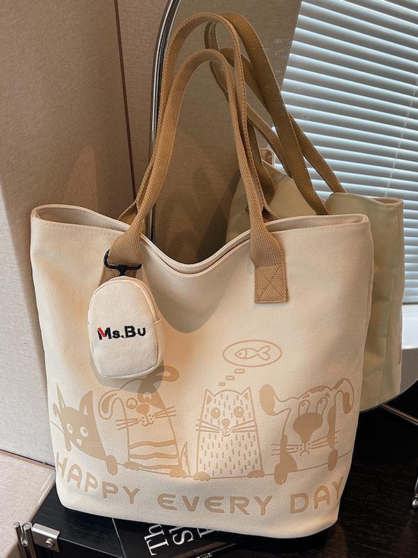 Autumn Winter Lightweight Canvas Tote Bag - Versatile Large Capacity Shoulder Bag for Women and College Students