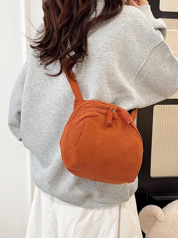 Women's Retro Casual Corduroy Shoulder Bag - Solid Color, Japanese & Korean Style Crossbody Fashion