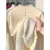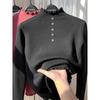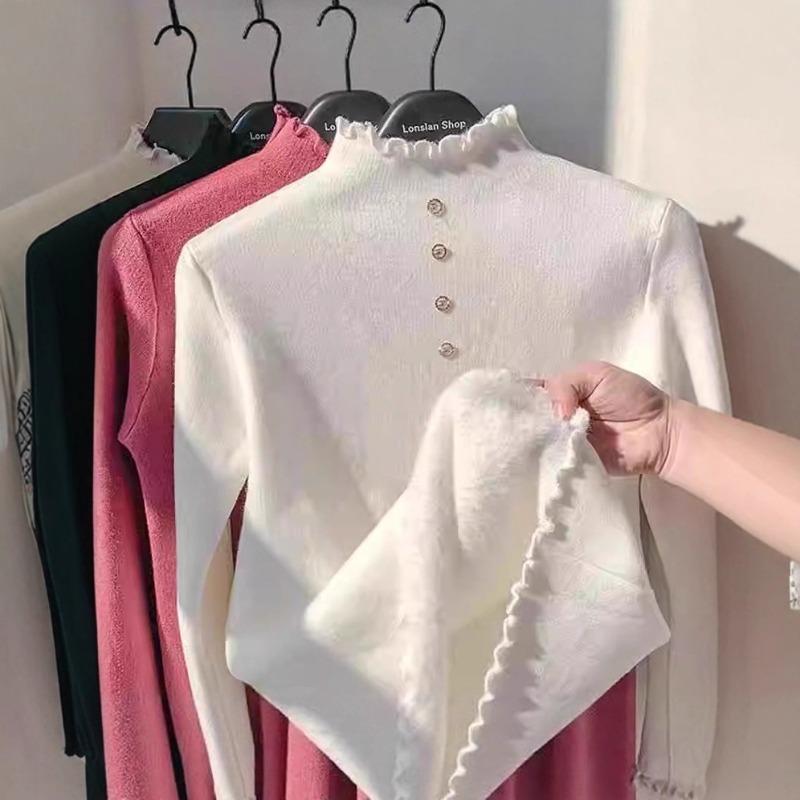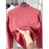 Fleece Sweater Women's Thick Fungus Edge Integrated Fleece Knitted Bottoming Shirt with Autumn and Winter Semi-turtleneck Thermal Top