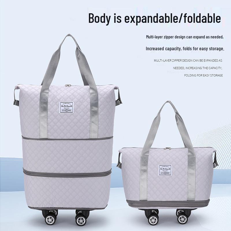 Expandable Large Capacity Travel Bag with Wheels, Double Layer, Foldable, Wet & Dry Separation, Ideal Hospital Carry-on