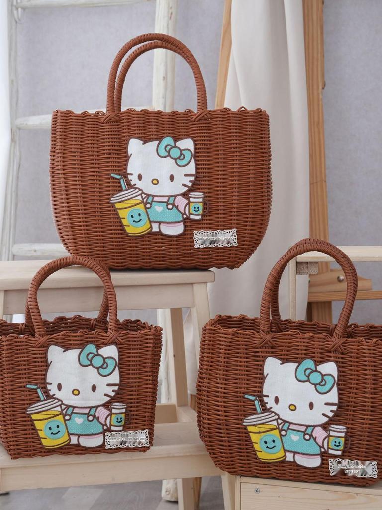 Adorable Cat Woven Tote Bag - Square Handmade Basket for Shopping & Everyday Use