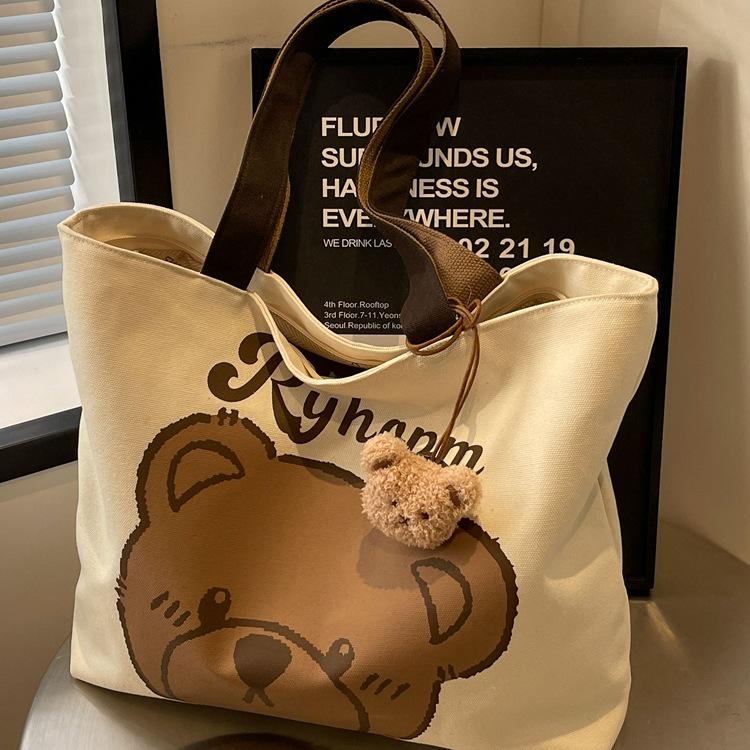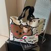 Women's Large Casual Canvas Tote - Summer Cartoon Bear Design for College & Commute