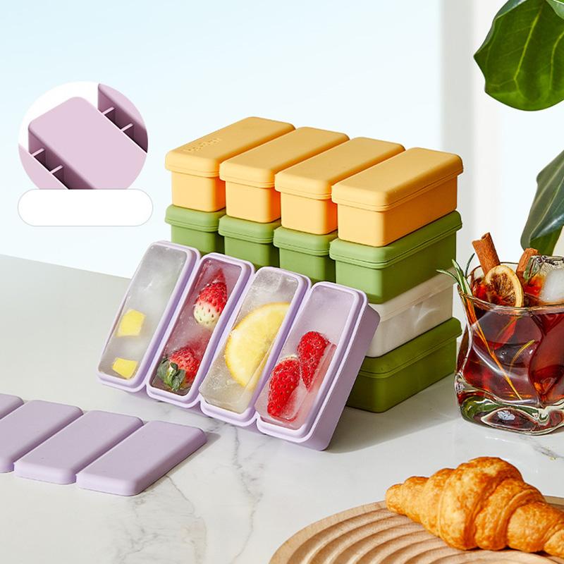 4 Grids Rectangle Ice Cube Mold with Lid Silicone Ice Cube Tray Cold Drinking Ice Maker DIY Ice Cream Cake Chocolate Mould