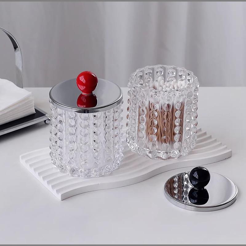 European Style Bead Dot Glass Jar Bedroom Desktop Jewelry Cosmetics Cotton Swab Box Home Multifunctional Candy Nuts Storage Jar