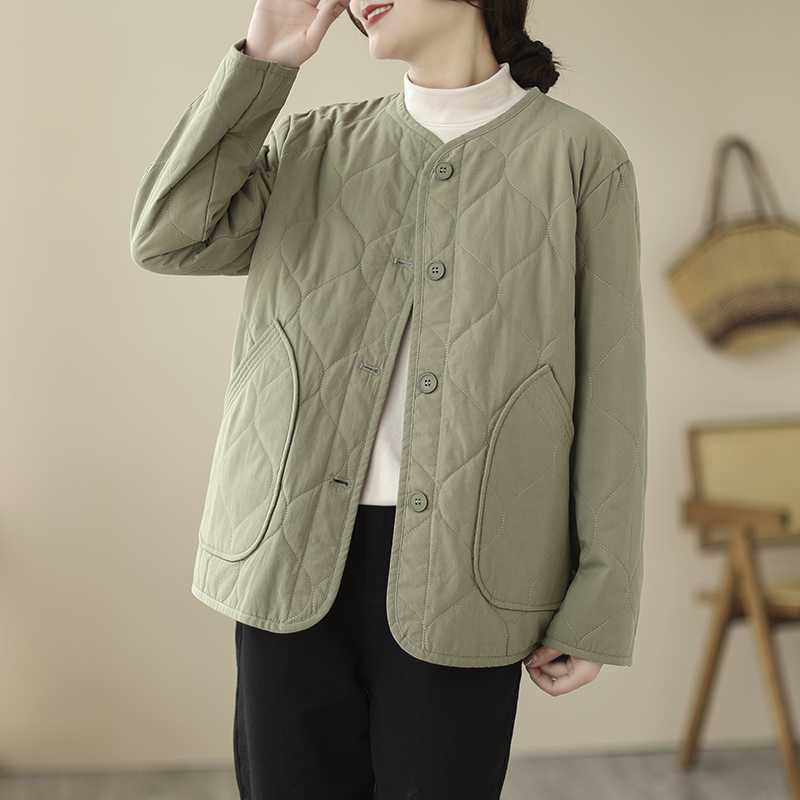 Retro Cotton Winter Quilted Warm Long-sleeved Padded Jacket Women's Solid Color Rhombic Padded Jacket Short Jacket