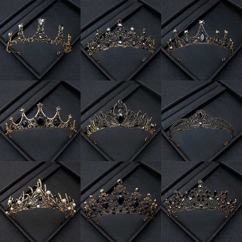 Black Retro Simple Elegant Crown Bridal Tiara for Women Princess Adult Birthday Crown Children's Hair Accessories