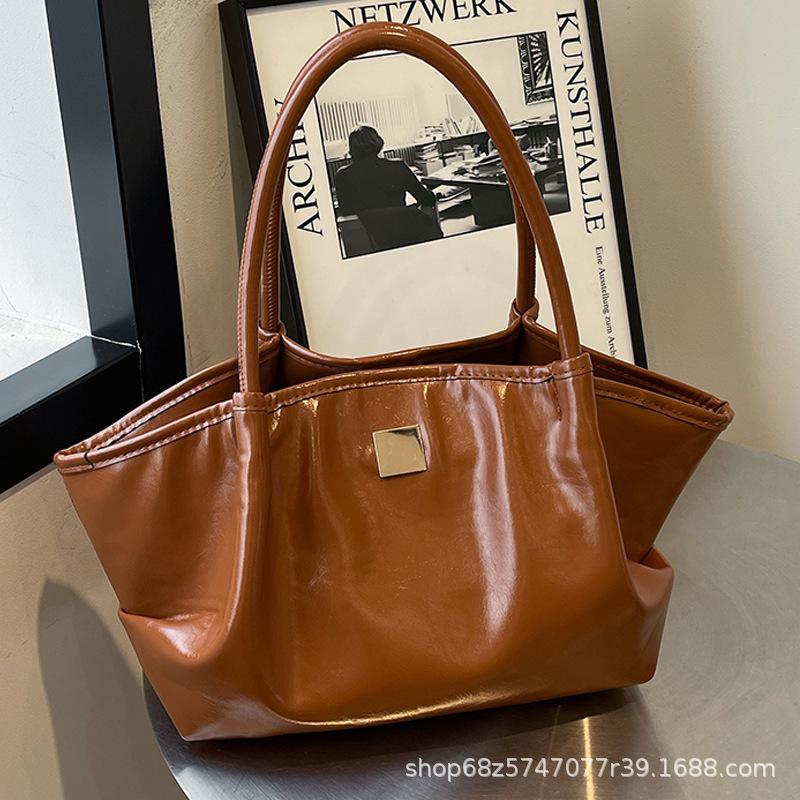 Premium Oil Wax Pitot Bag Women's Niche Vegetable Basket Bag Retro Commuter Handbag Casual Shoulder Armpit Bag