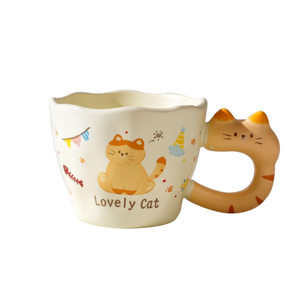 Cute Cat Ceramic Cup Cute Covered Mug Drinking Water Creative Household Coffee Cup Cat Ceramic Cup