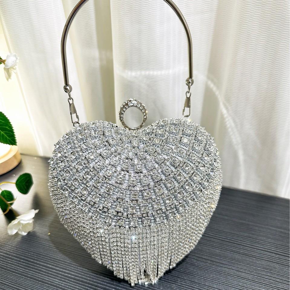European & American Fashion Rhinestone Heart Handbag - Women's Tassel Evening Bag