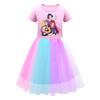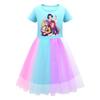 Kids Girls K-POP Rumi Zoey Mira Print Mesh Rainbow Round Neck Short Sleeves Casual Cotton Dress