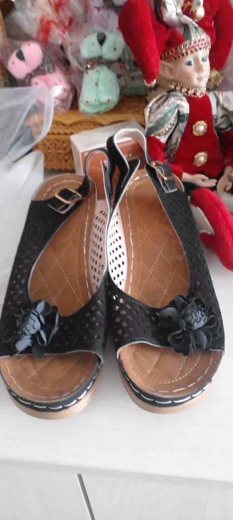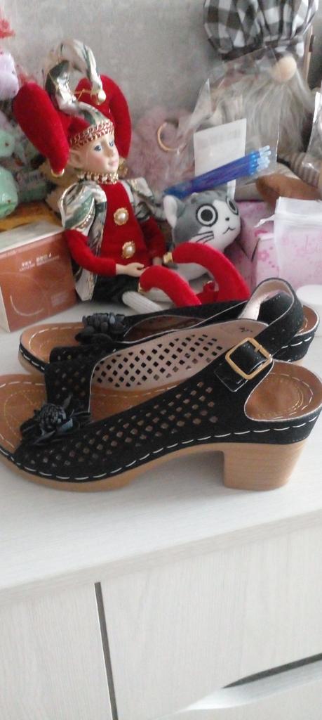 Plus Size Flower Heeled Sandals Women's New Fashion Casual Buckle with Solid Roman Sandals