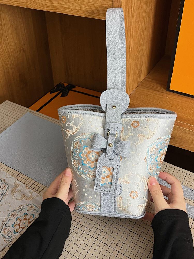 Song Brocade DIY Embroidery Kit: Chinese-Style Handmade Bucket Tote & Crossbody Bag.