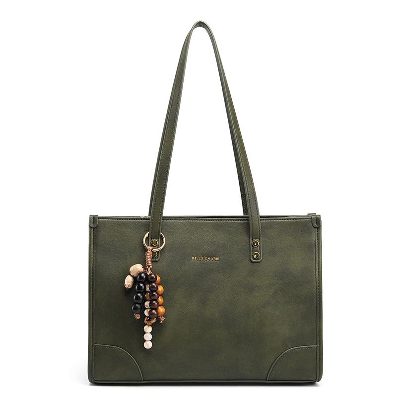 Women's Olive Green Retro Tote Bag - High-end Shoulder Bag for Autumn/Winter 2025