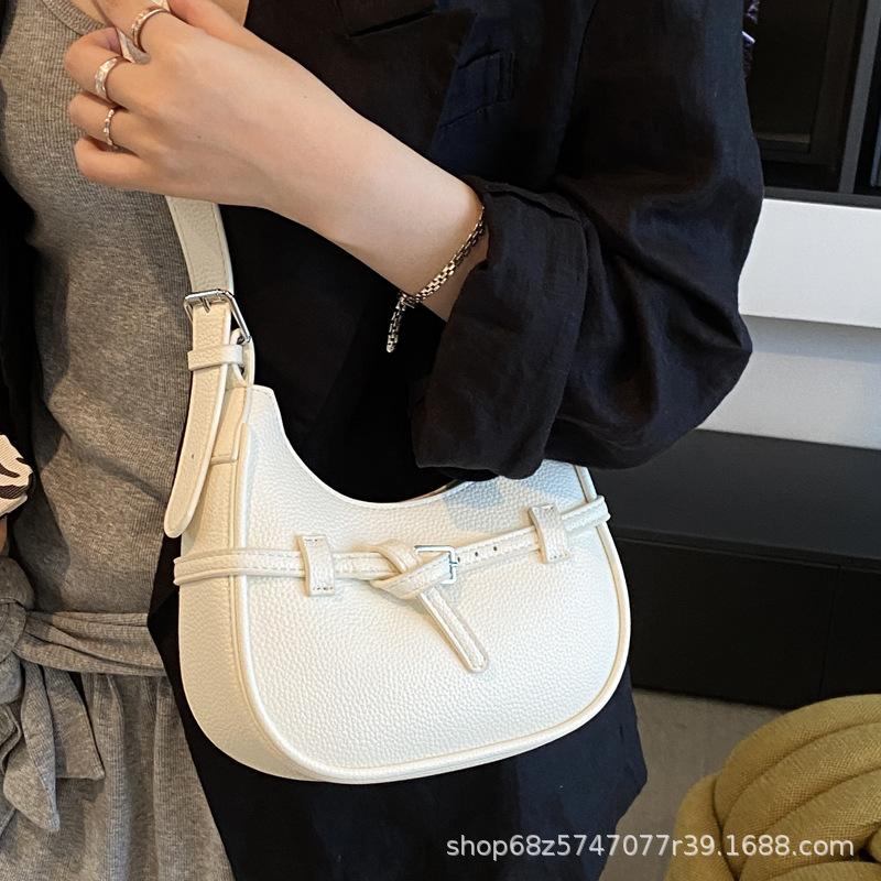 2025 New French Underarm Bag, High-end Niche Lychee Pattern Crescent Bag, Simple and Versatile Single Shoulder Messenger Bag