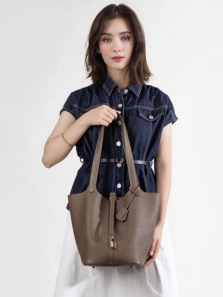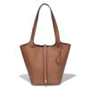 Extra Large Genuine Leather Single Shoulder Market Basket Bag - Top Layer Cowhide Exquisite Women's Handheld Bucket Bag