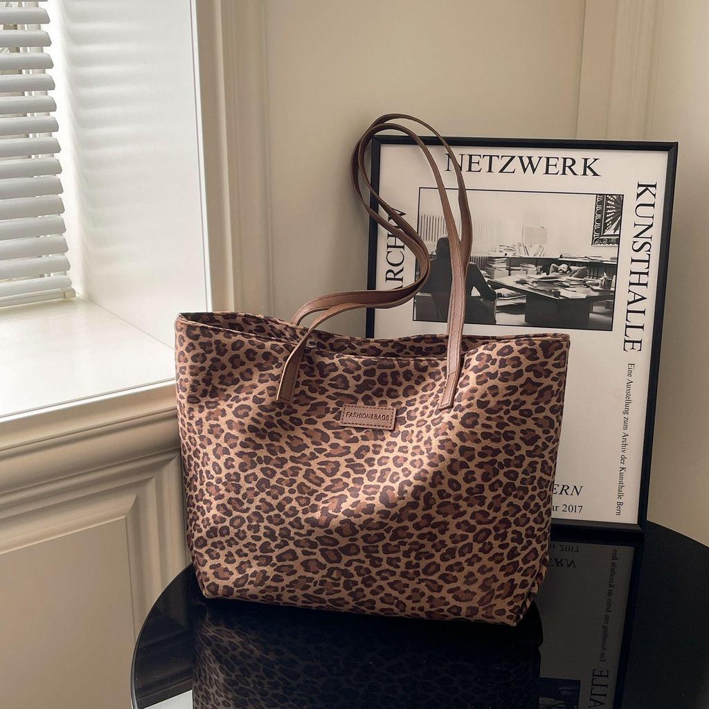 Leopard Print European Retro Tote Bag: Fashionable, Versatile, Large-Capacity Shoulder Handbag for Women