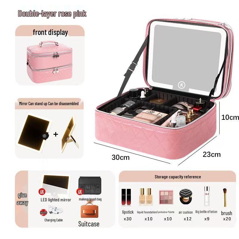 2025 High-Capacity LED Makeup Case: Portable Travel Bag with Mirror & Light