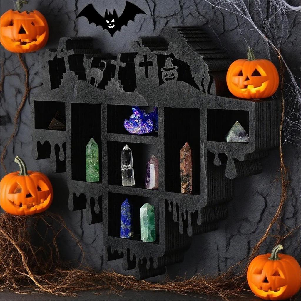 Crystal Shelf Display for Wall Gothic Wall-Mounted Gem Stone Storage Holder Multifunctional Wooden Floating Organizer Shelves