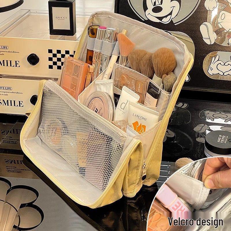 Large Capacity Women's Portable Vertical Cosmetic Bag with Multilayer Storage for Skincare and Travel