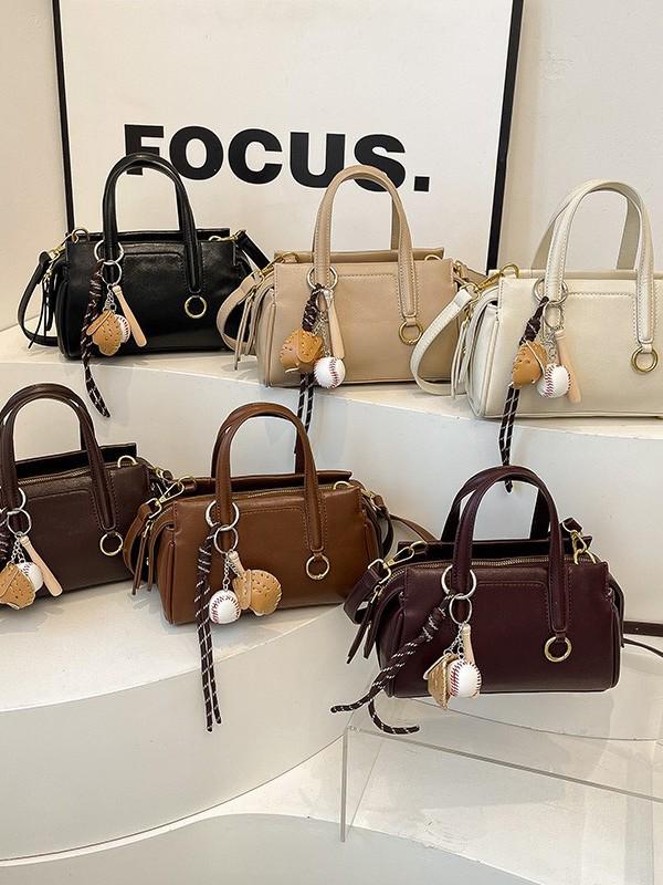 Retro Korean-Style Solid Color Boston Handbag - Women's Single Shoulder Crossbody Bag
