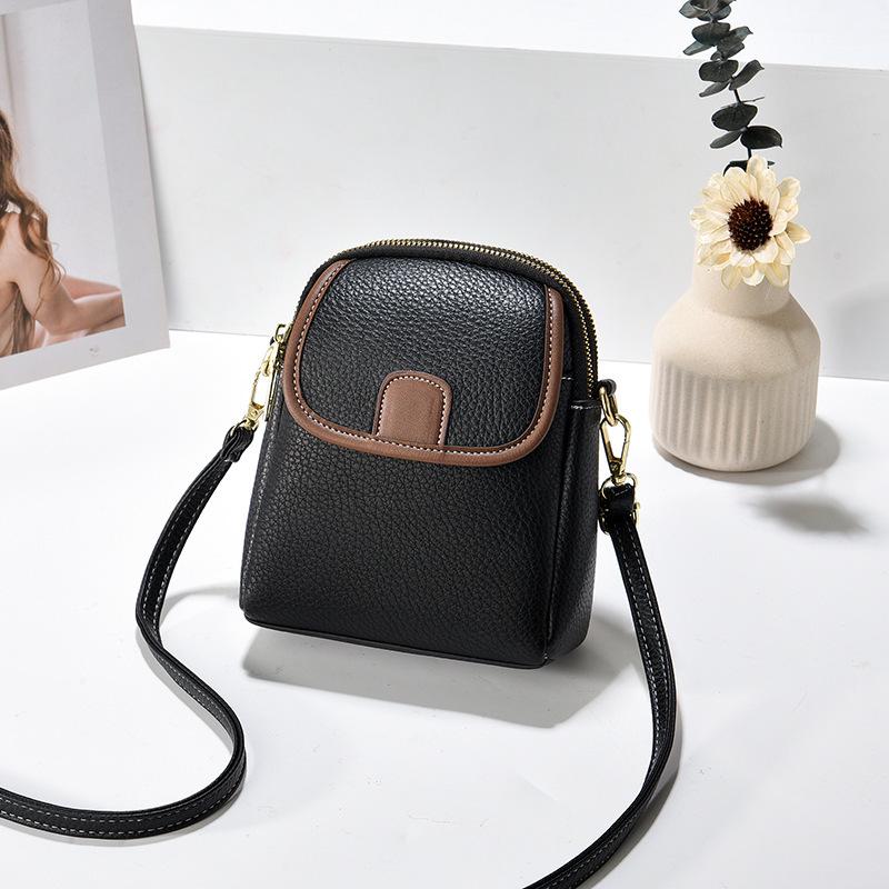 2025 Summer Korean Style Lychee Color Block Phone Crossbody Bag