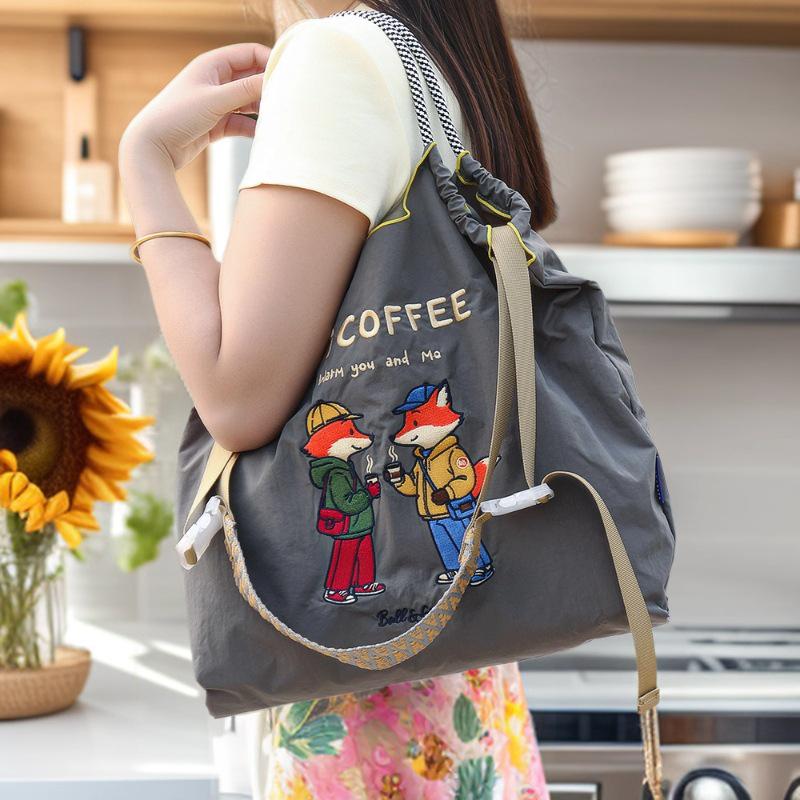 Versatile Cartoon Canvas Bag: Cute Waterproof Tote, Shoulder, and Crossbody Bag for Shopping and Going Out. Eco-Friendly.