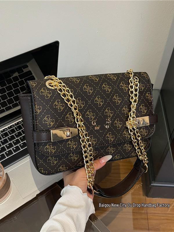 2025 European & American Retro Print Chain Shoulder Bag: New Light Luxury Women's Crossbody & Commuter Underarm Bag