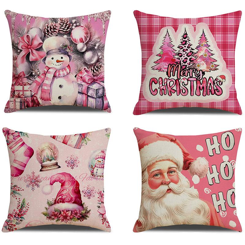 1pc Pink Christmas Cushion Cover Snowman Santa Claus Durable Cover 2025 New for Home Ornament Xmas New Year Christmas Decor
