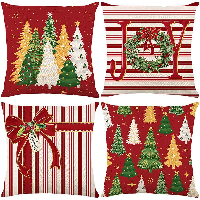 1pc Red Striped Cushion Cover Christmas Tree Bow Durable Cover 2025 New for Home Ornament Xmas New Year Christmas Decoration