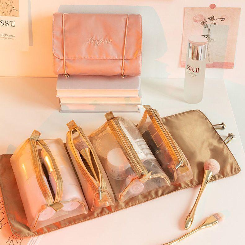 1pc New Four In One Makeup Bag for Travel, Portable, Multi Functional, Large Capacity, Detachable, Toilet and Storage Bag