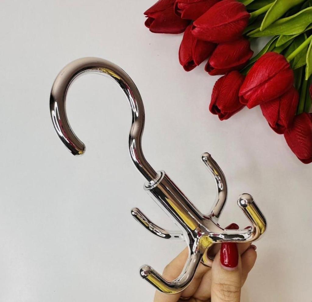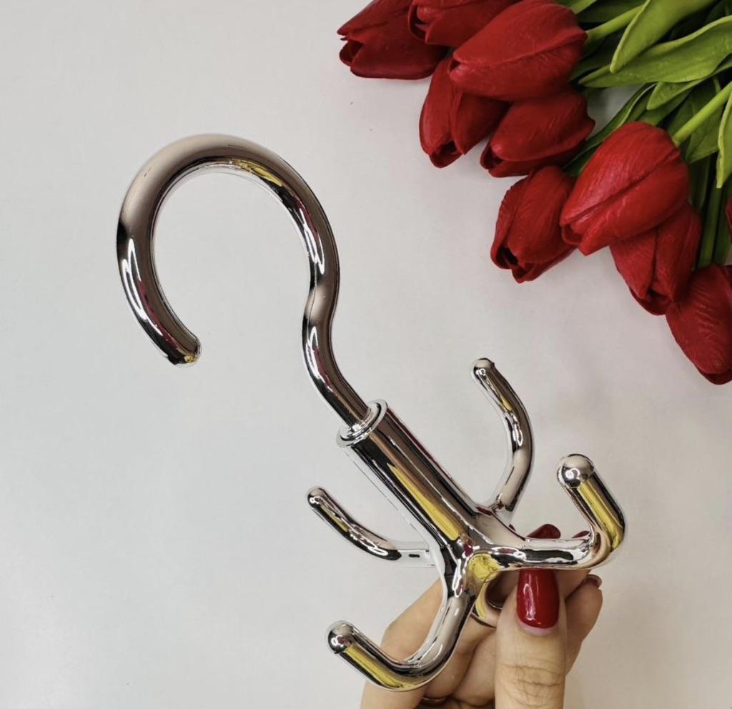 The multi-functional rotating clothes hanger is a smart and efficient solution for organizing the closet without the need for drilling. Installation is easy and fast, and it's suitable for any wardrobe or closet door – without damaging the walls.. The rotating design with 4 hooks allows easy access to every item, whether it's coats, belts, scarves, or bags. The smooth rotation saves space and significantly improves order and accessibility in the closet.. What I really loved is the versatility and strength – the hook is stable and durable, holds multiple items simultaneously and helps keep the closet tidy and organized. A practical and elegant solution for every home ✨👚🧣