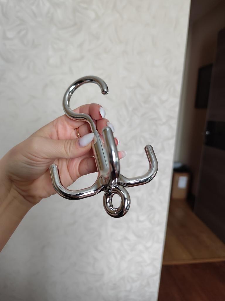 Hook Convenient hook, reliable, strong. But it arrived broken, one hook on one side was broken off. And so the idea is cool, the hook spins, it's convenient to hang something.
