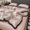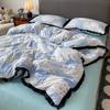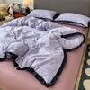 INS French Style Floral Simple Black Lace Double Layer Gauze Bedding Set Washed Cotton Bed Sheet Fitted Sheet Fresh Quilt Cover