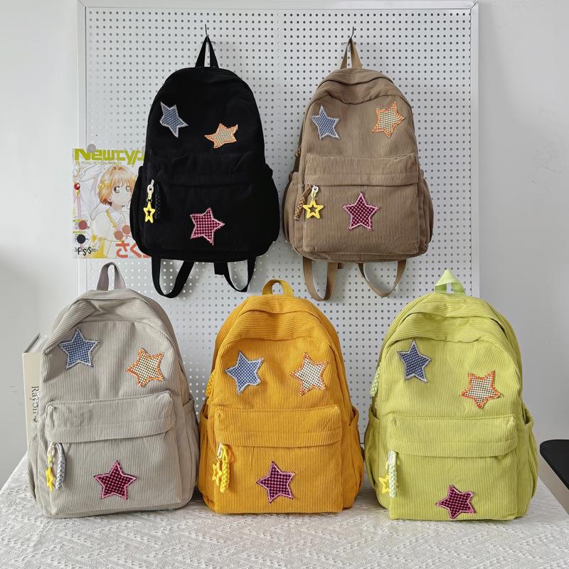 Women's Mori Style Corduroy Backpack - Harajuku Middle School Bookbag with Star Design for Travel