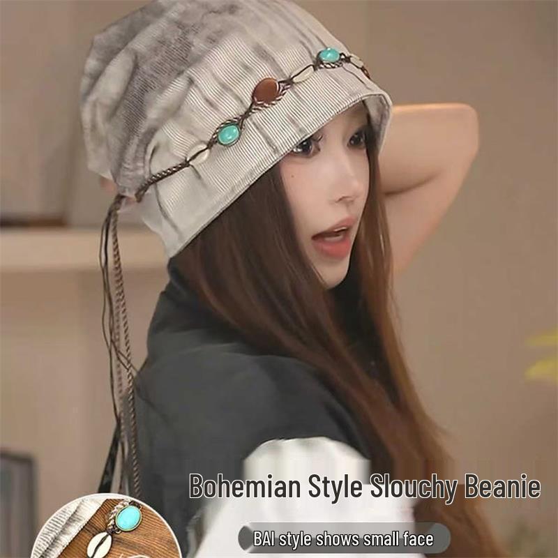 Women's Ethnic Tie-Dye Tassel Beanie with Beaded Butterfly Decor