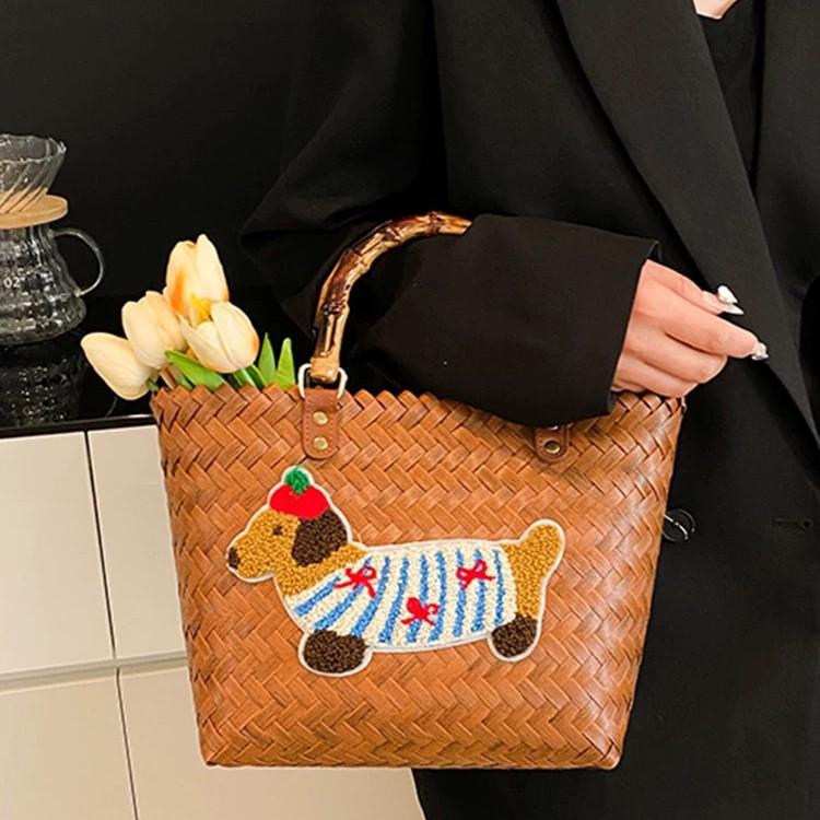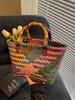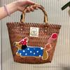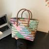 Elegant Handmade Bamboo Woven Tote – Stylish Rattan-Style Beach & Makeup Bag