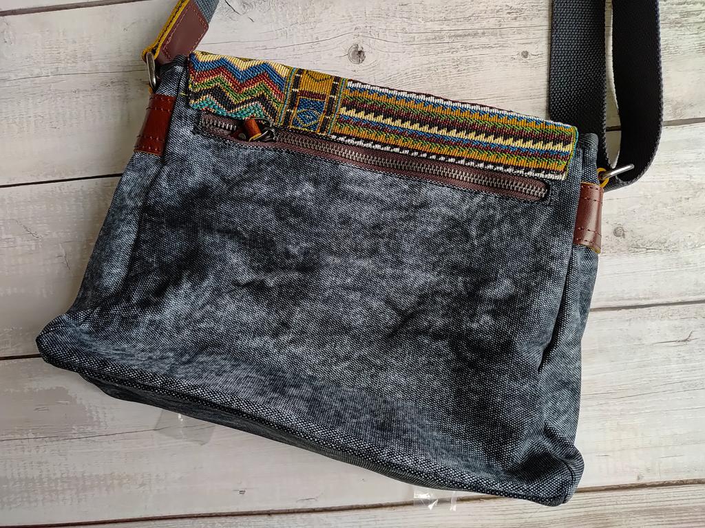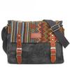 Ethnic Patchwork Canvas Shoulder Bag with Cowhide Buckle and Retro Webbing Design