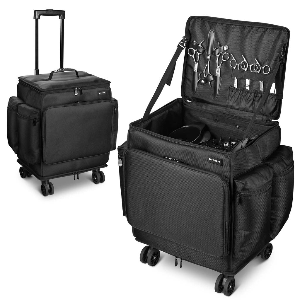 FOLDABLE & PORTABLE - This Byootique 42 x 32.8 x 54 cm rolling hairdressing case features a foldable design and weighs just 4.3 kg, allowing it to be easily folded when not in use. It offers space-saving storage and portability for hairstylists, making it ideal for a variety of occasions. The rolling case features a telescoping handle and a top handle for easy portability.