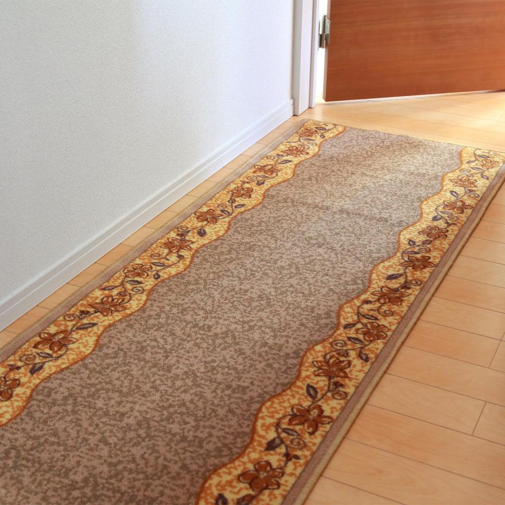 IKEHIKO Hallway Rug, Liga Beige, Approx. 67 X 440cm, Floral Pattern, Soundproofing Mat #2003290