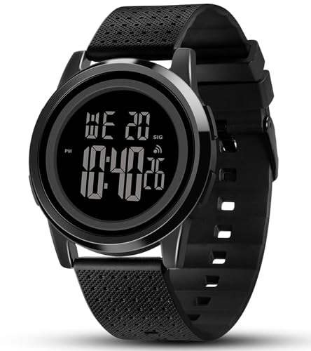BUREI Men's Digital Watch, Luminous, Waterproof, Date Display, Black, Outdoor, Large, Easy-to-Read, Multi-Function Stopwatch