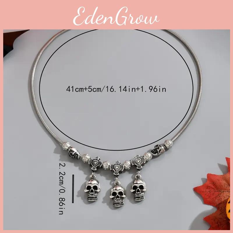 This dark-style chain necklace features a geometric alloy design with a skeleton head pendant and tassel accents, creating a bold costume accessory. Crafted from durable alloy with electroplating. Ideal for Halloween parties or gothic-themed events, it enhances any costume look. Easy to maintain, wipe clean with a damp cloth for long-lasting wear.