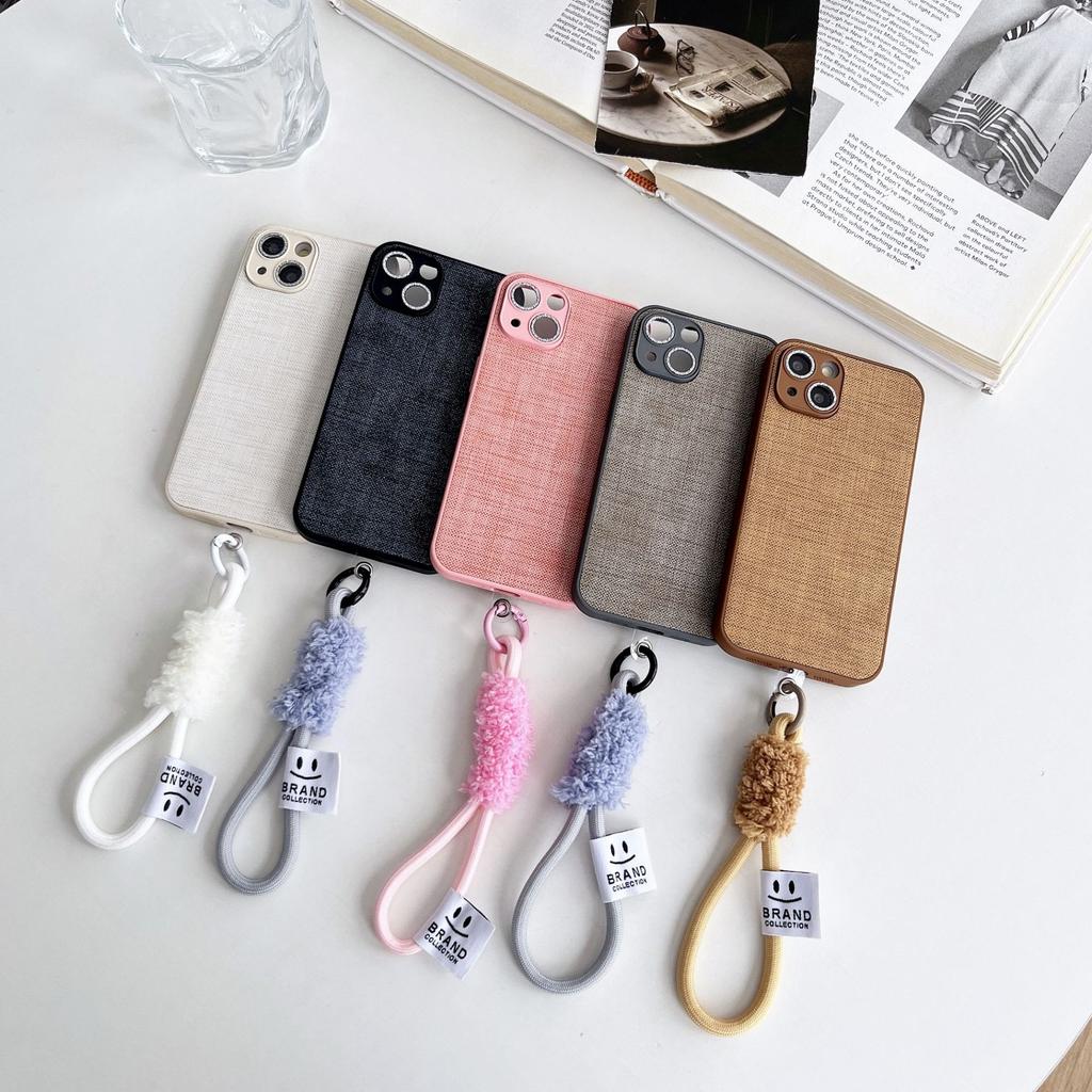 Cloth Patterned Smiley Face Wrist Strap Hanging Rope Phone Case for IPhone 16, 15 Promax Protective Case, 14 Women