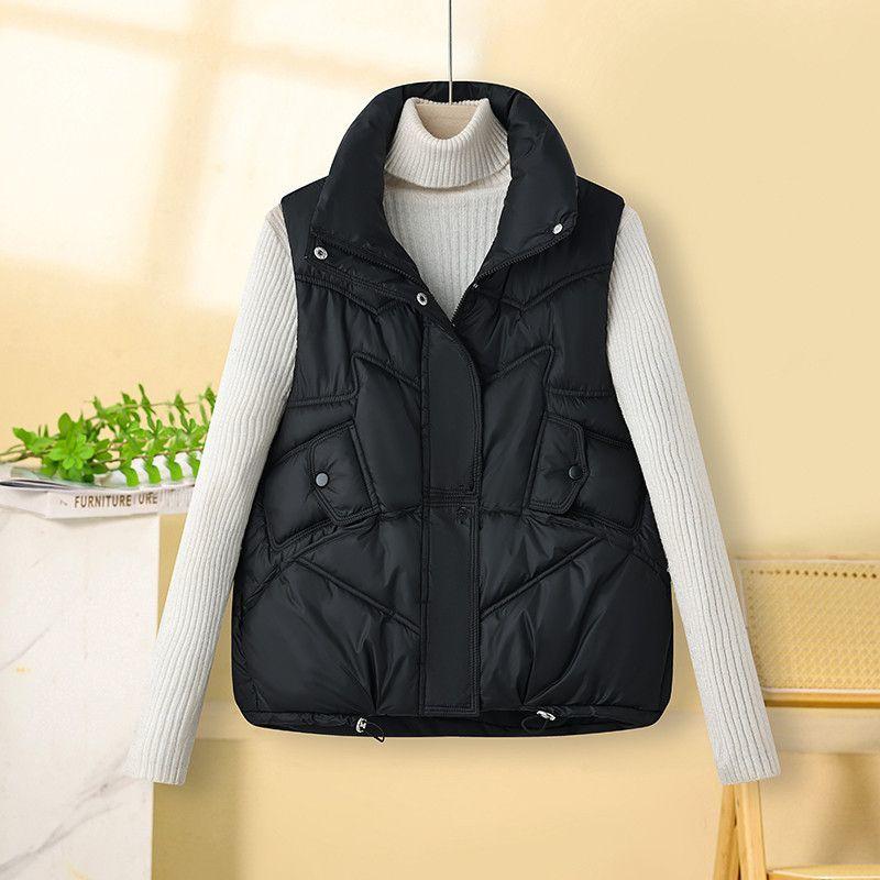Fashion Short Down Cotton Vest Korean Style Stand Collar Loose Sleeveless Jacket for Autumn Winter