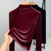 Semi-turtleneck Bottoming Shirt Women's 2025 New Women's Clothing Solid Color Velvet Long-sleeved T-shirt Warm Inside with Waist Top