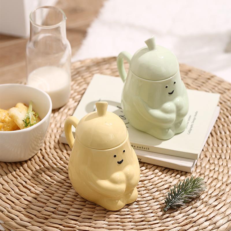 Hug Pear Water Cup Super Cute Ceramic Mug Student Breakfast Milk Cup Oat Cup with Lid