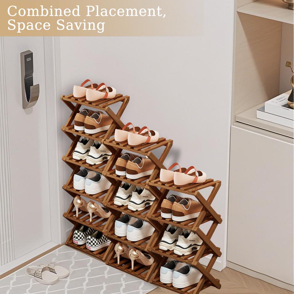Bamboo Folding Shoe Rack Space Saving Wooden Shoes Organizer Entryway Corner Shelf Stable Construction Large Capacity Cabinet