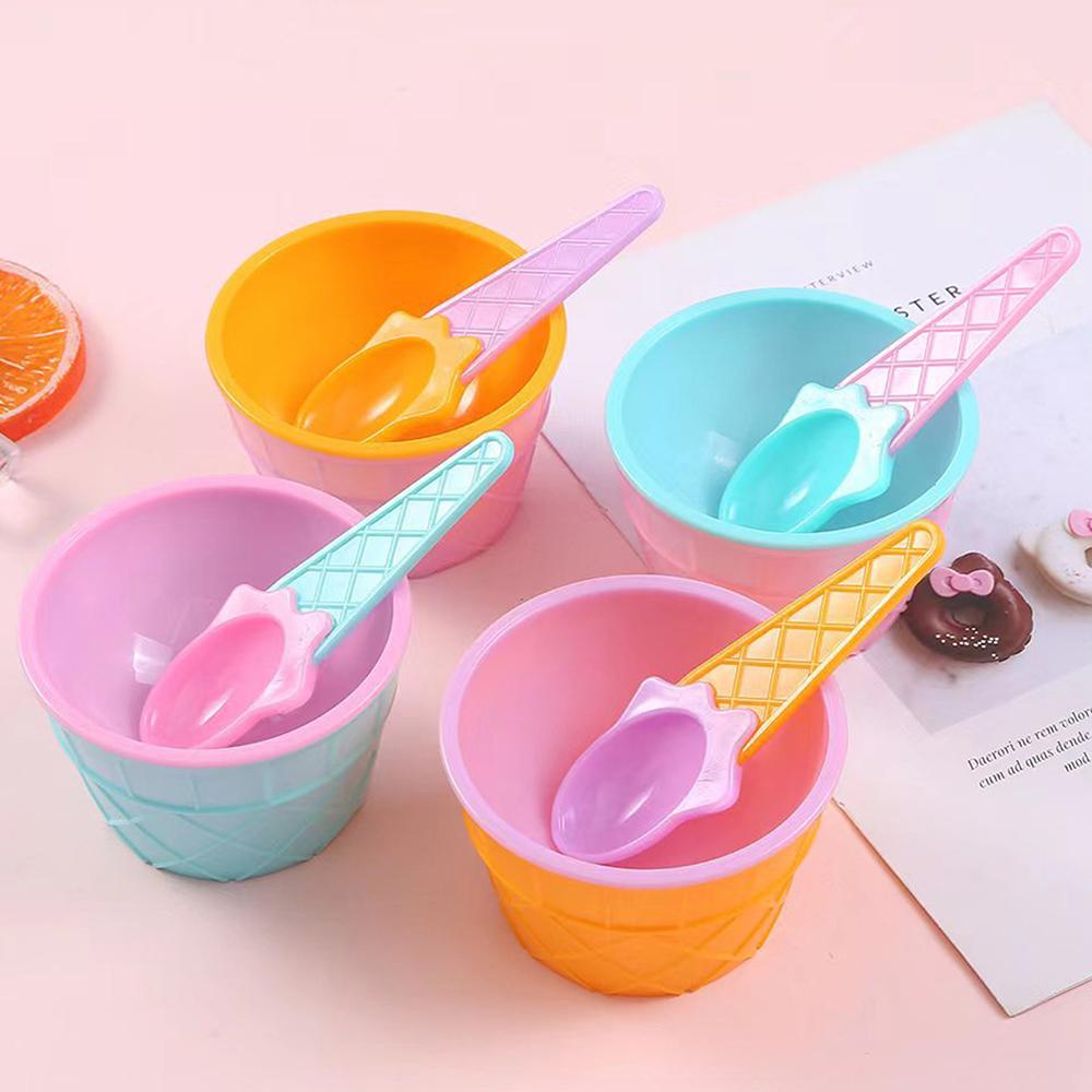 Cartoon Double Ice Cream Scoop Bowl Set, Perfect For Desserts Kids Ice Cream Cup Summer Holiday Party Home Kitchen